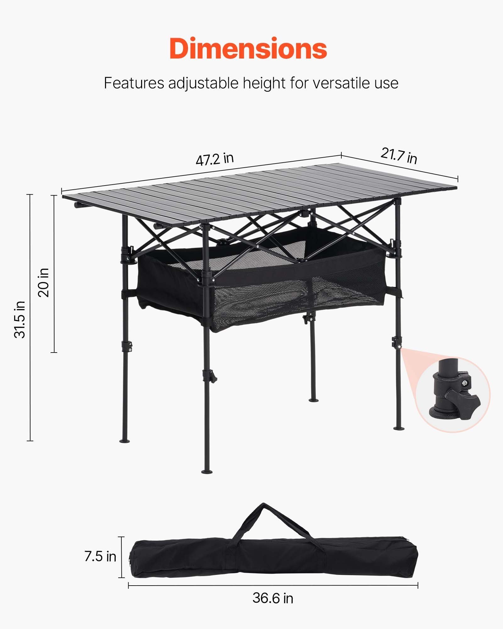 Folding Portable Camping Table Aluminum Outdoor Picnic Roll Up Table Storage Bag